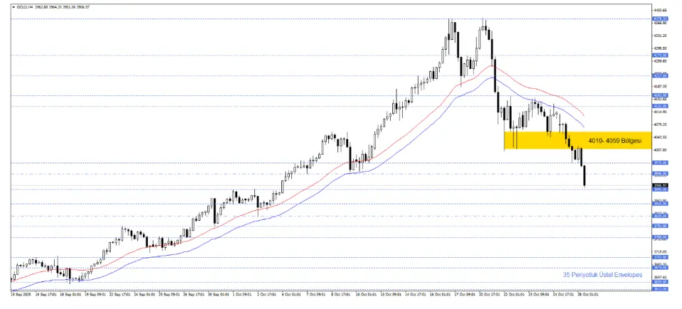ABD ve Çin’in ticaret ateşkesi konusunda ön anlaşmaya vardığı ve 30 Ekim’de nihai anlaşmanın duyurulabileceğine yönelik haberler sonrasında dün başlayan satış baskısı bugün de etkisini sürdürüyor. Fiyat 3.900 dolar seviyesine kadar gerilerken, piyasaların odağı yarın açıklanacak Fed faiz kararına çevrilmiş durumda.