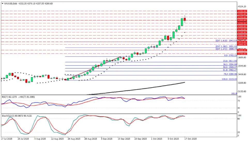 Diğer yandan ABD-Çin arasındaki ticaret gerilimlerinin yeniden tırmanması, küresel risk seviyesini arttırarak altını cazip hale getirdi. Ancak son saatlerde gelen Trump açıklamaları, “%100 tarife sürdürülebilir değil” ve “iki hafta içinde Çin’le görüşeceğiz” mesajlarıyla piyasalarda kısa vadeli bir rahatlama yarattı. Bu gelişmeyle birlikte altın fiyatında bir kâr satışı gözleniyor ve grafikte de görüldüğü üzere fiyatlar 4400 dolar direncinden geri çekilme yaşıyor. RSI ve Stokastik göstergelerin aşırı alım bölgesinde bulunması, bu düzeltmenin teknik anlamda da doğal olduğunu gösteriyor. Genel görünüm, kısa vadeli bir soluklanmanın ardından yükseliş trendinin 4000–4050 dolar üzerindeki kalıcılık sağlandıkça korunabileceğine işaret ediyor.