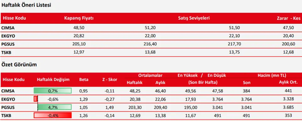 Aracı Kurum Haftalık Hisse Önerilerini Yayınladı