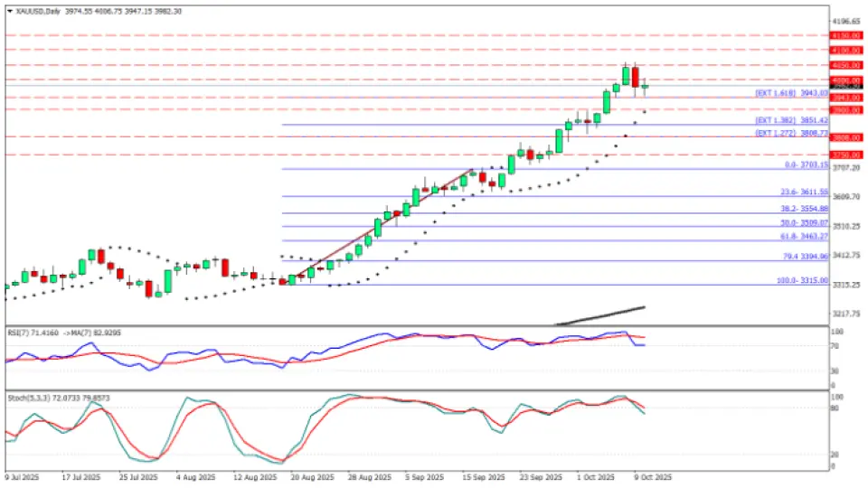 Altın fiyatı güçlü yükseliş trendini sürdürse de, 4.050 dolar seviyesinde zorlanma belirtileri gösteriyor. Fiyat, 4.050 – 4.100 dolar bandındaki güçlü direnç bölgesinden hafif geri çekilerek 4000 – 3943 aralığında dengelenme eğiliminde. İşte detaylar...