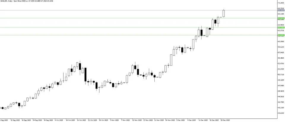 Gümüş fiyatında da altınla benzer bir şekilde pozitif bir eğilim görülüyor. Yeni haftanın ilk saatlerinde tarihi zirvesini tazeleyen gümüş için direnç belirlemek risk taşıyor. Destek olarak 62,04, 64,19 ve 66,86 seviyeleri takip edilebilir.