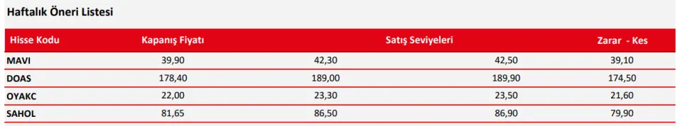 Aracı Kurumun Haftalık Öneri Listesi Yayınlandı