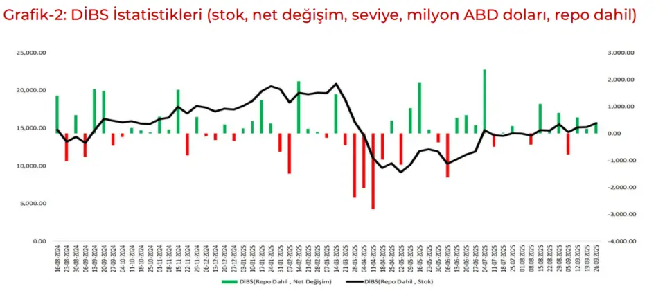 Siyasi akış, jeopolitik tansiyonda yeniden yükseliş , hem ABD hem de iç tarafta yoğun haber akışının devamının ardından yabancı nezdinde pozisyonlanmalara baktığımızda hafif de olsa alış yönlü pozisyonlanmalarını sürdürdüğünü izlemekteyiz. Önümüzdeki dönemde ise özellikle Cuma günü gelecek enflasyon verisi ve yoğun Ekim takviminin yabancı nezdinde eğilimi belirleyecek unsurlar olmasını beklemekteyiz. Son hafta işlemiyle beraber yılbaşından bu yana toplam yabancı girişi 1,82 milyar dolar olarak gerçekleşirken Mart sonrası yabancı girişi ise 2,64 milyar dolar olarak gerçekleştiğini görmekteyiz.