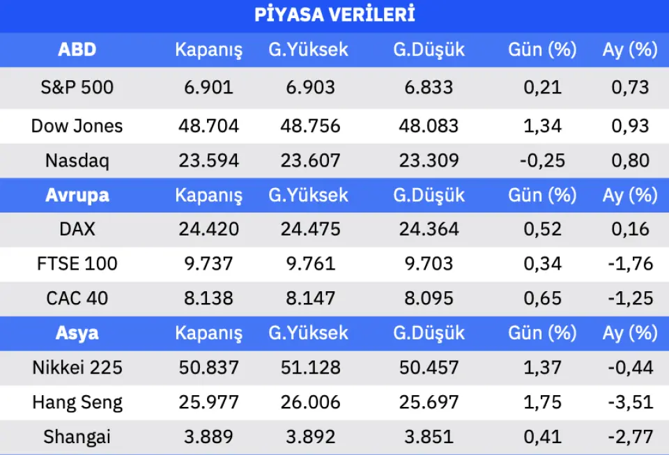 Asya piyasaları da küresel iyimserliği takip ederek tarihi zirvelere yaklaşırken, ABD’de S&P 500, Dow Jones ve küçük ölçekli hisseler yeni rekor kapanışlar yaptı, vadeli işlemlerde ise sınırlı geri çekilmeler daha çok kâr realizasyonu olarak değerlendiriliyor.