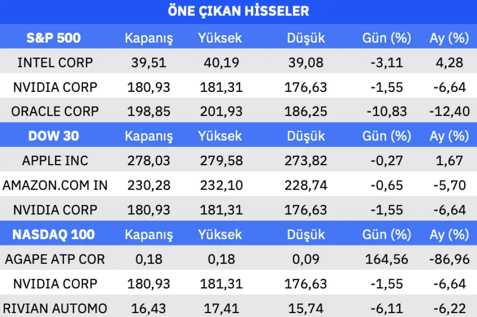 Broadcom (AVGO), Şirket beklentilerin üzerinde finansal sonuçlar ve güçlü bir gelecek görünümü açıklamasına rağmen hisse açılış öncesi işlemlerde değer kaybetti. Gelirler yıllık bazda %28 artarak 18 milyar dolarla rekor kırarken, yapay zekâ çip satışları %74 yükseldi; şirket ayrıca temettüsünü %10 artırdı. Buna karşın, güçlü sonuçların halihazırda fiyatlara yansımış olması ve yüksek beklentiler hissede satış baskısına yol açtı.(Olumsuz)