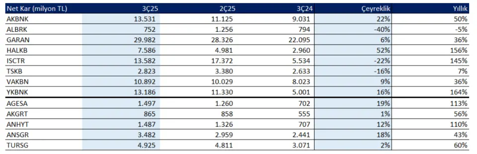 Phillip Capital 17 Ekim tarihli 3Ç25 Mali Sektör Kar Tahminleri raporunu yayınladı. Aracı kurumun analizi aşağıdaki gibi oldu: