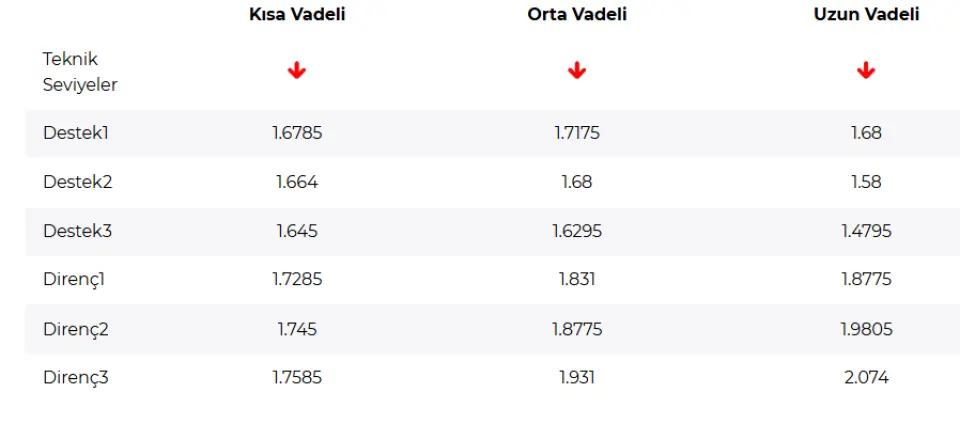 Alternatif senaryoda ise referans 1,7285 bölgesi üzerine doğru bir ilerleme yönelimi durumunda ise 1,7450 ve 1,7585 seviyeleri test edilebilir.