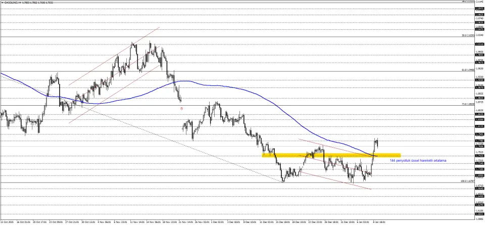 Benzin fiyatında Kasım ayından itibaren görülen düşüş ile birlikte mevcut durumda 1,6785 seviyesi güncel dip noktası olarak kaydedilmiştir. Pozitif momentumun devreye girmesiyle 144 periyotluk üssel hareketli ortalamanın desteklediği kritik öneme sahip 1,7425 seviyesi üzerinde fiyatlamalar göz önüne alınabilir. Yukarı yönde ilk test 1,7785 seviyesinde yaşanabilir. Devamında ise 1,7945 ve 1,8135 seviyesi gündeme gelebilir.
