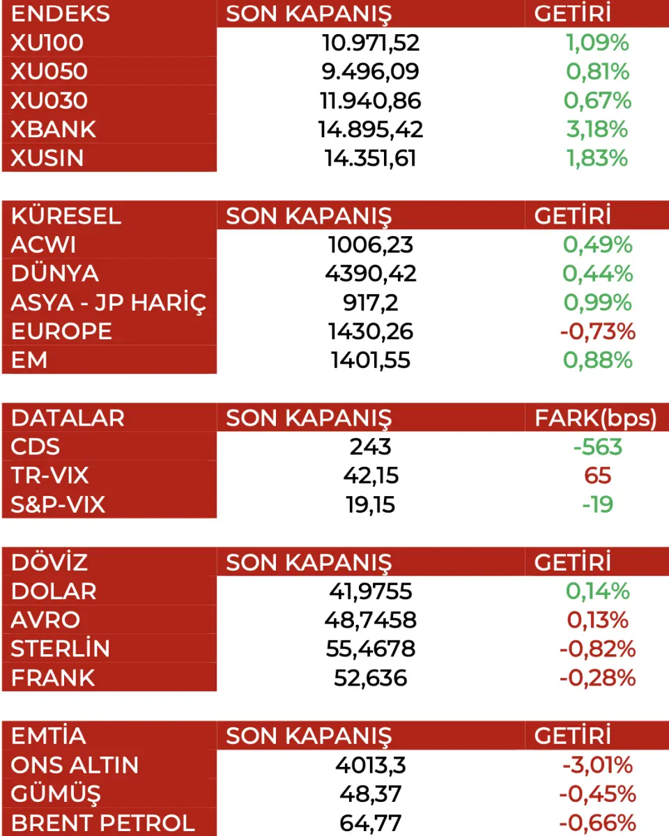 - "İç tarafta Pazartesi ve Cuma’nın majör etki yarattığı, bilanço bazlı fiyatlamanın sürdüğü ve endekste dar bant aralığında maksimum 11250 üst bant olduğu ancak ana odağın 10550-11000 aralığı olacağı bir yapıyı izlemeye devam edeceğiz."
