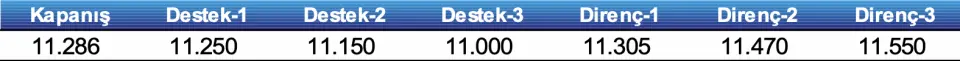 Geri çekilmelerde ise ilk etapta 11.250 destek seviyesini izliyoruz. Dünkü işlemlerde de satışların bu seviyeden karşılandığını gördük. Teknik bakımdan 11.250’nin altında kalıcılık sağlanması halinde geri çekilme devam edebilir, bu durumda 11.150 destek bölgesini izleyeceğiz."