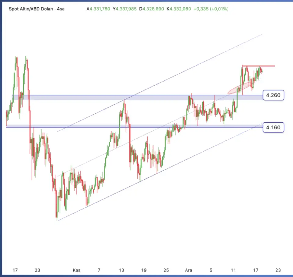 "Grafiğe farklı bir bakış açısı ile bakacak olursak 4.247-4.260 bölgesinin geçmişte yaşanan fiyat hareketlerinden de dolayı önemli bir destek direnç dönüşüm noktası olduğunu düşünmekteyiz.