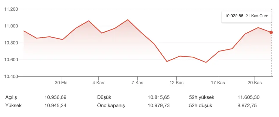 Yurt içinde bugün analistler, reel kesim güven endeksi ile kapasite kullanım oranının takip edileceğini dile getirdi. Yurt dışında ise Avrupa Merkez Bankası (ECB) Başkanı Christine Lagarde'ın açıklamaları, ABD'de Dallas Fed imalat sanayi endeksi ile Almanya'da Ifo iş dünyası güven endeksinin izleneceği aktarıldı. BIST 100 endeksinde teknik açıdan 10.800 ve 10.700 puanlarının direnç, 11.000 ve 11.100 seviyelerinin ise destek konumunda olduğu aktarıldı.