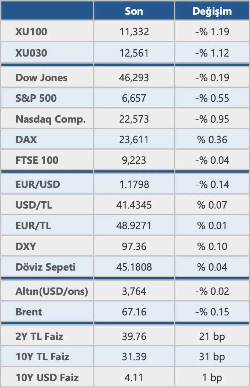 Piyasa Özetine İlişkin: