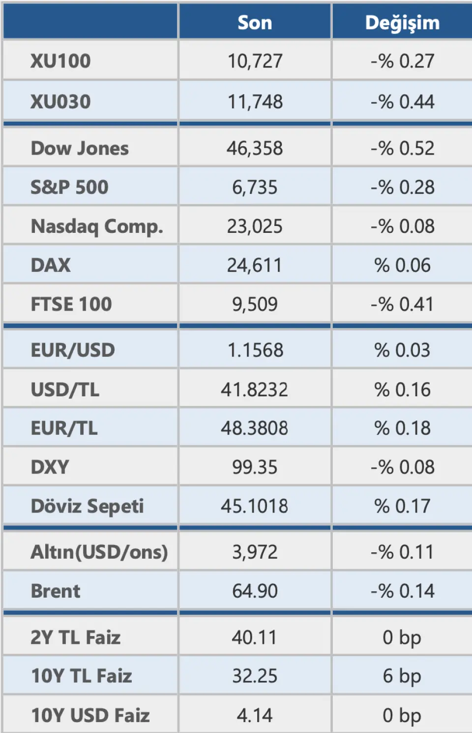 Borsa'nın aracı kurumu Ünlü Menkul Değerler'in (UNLU & Co) günlük bülteni yayımlandı. Aracı kurum, "PİYASALAR PATİNAJ ÇEKİYOR" ifadesini kullandı. Ünlü Menkul Değerler, endekslere ilişkin değerlendirmesini yatırımcıları ile 10 Ekim 2025 tarihinde paylaştı.