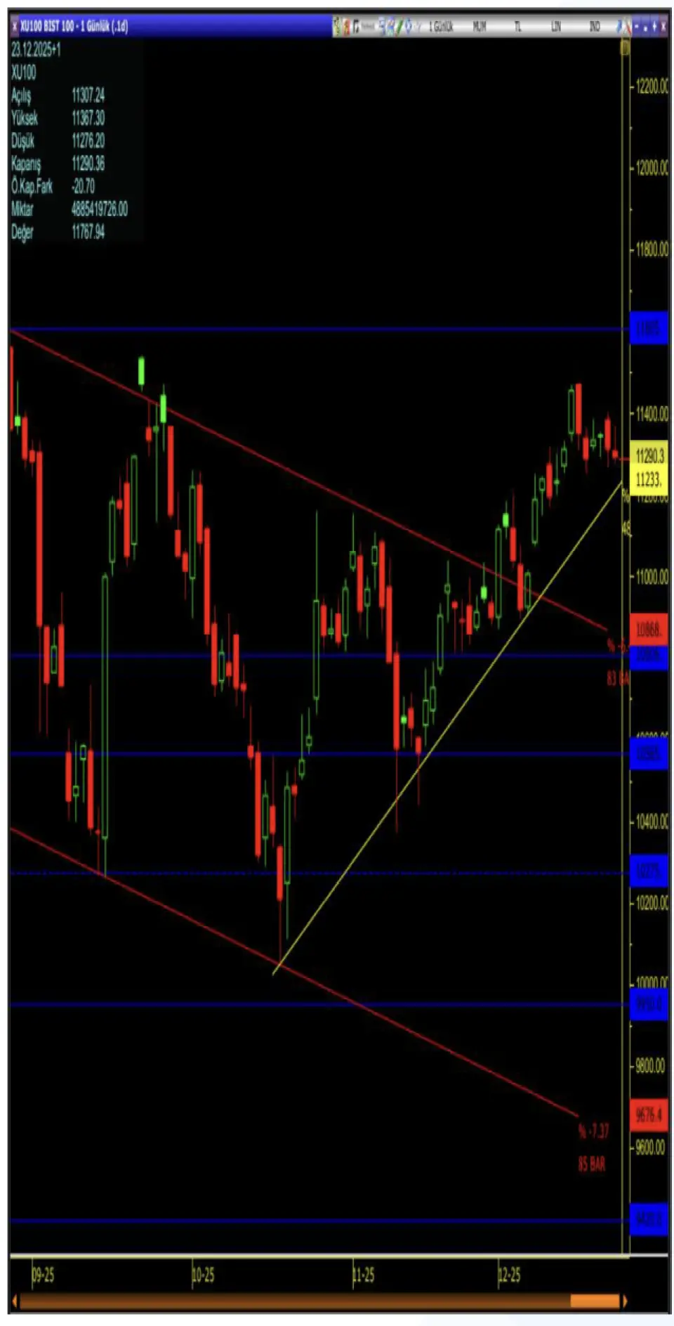 - "Geri çekilmelerin devamı halinde 11252 seviyesi kısa vadede kritik bir destek noktası olarak öne çıkıyor. 11252’nin altına sarkması durumunda, 11045 seviyesine doğru güç kayıpları görülebilir."