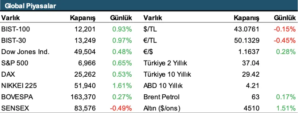 "Endeksi teknik olarak değerlendirdiğimizde, 2025'in son günlerinde başlayan ve sonrasındaki 8 işlem gününü de pozitif tamamlayan yükseliş sürecinde, önceki haftalarda oluşan yükselen üçgen formasyonunun hedef bölgesine yaklaşıldığını görüyoruz.