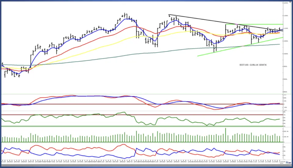 Teknik tarafta, kısa vadeli görünümde izlediğimiz alçalan direnç seviyesinin üzerine çıkılmasına karşın bu hareketin güçlü ve hacimli bir kapanışla desteklenmediğini görüyoruz. Bu nedenle 11.000 puan seviyesini kısa vadeli ana direnç olarak takip etmeyi sürdürüyoruz. Bu seviyenin hacim destekli kırılması durumunda yukarı yönlü hareketin ivmelenmesi ve ilk etapta 11.150 puan bölgesine doğru yükseliş potansiyeli gündeme gelebilir.