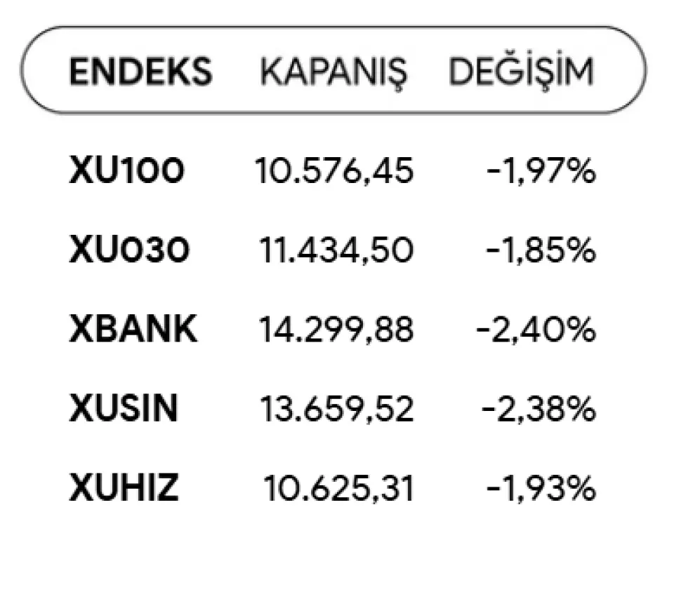 BIST 100 endeksi, dünkü %1,97'lik düşüşle üst üste üçüncü gün negatif kapattı ve 10373 puana geriledi. İşte detaylar...
