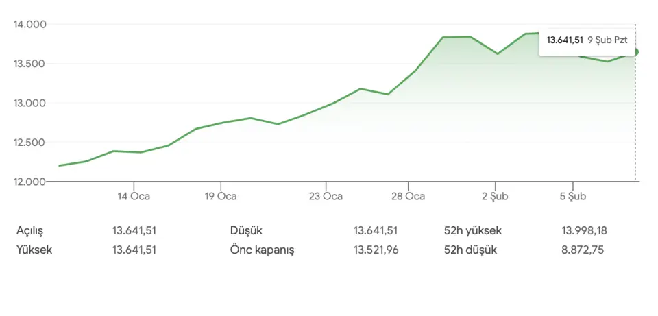 | Açılış Puanı | 13.641,51 | Güçlü Başlangıç |