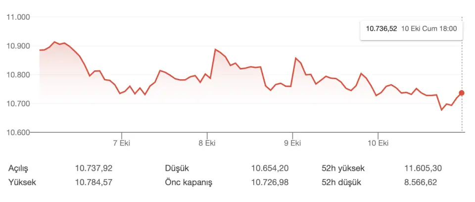 Son 5 Güne Ait BİST 100 Endeksi Grafiği:
