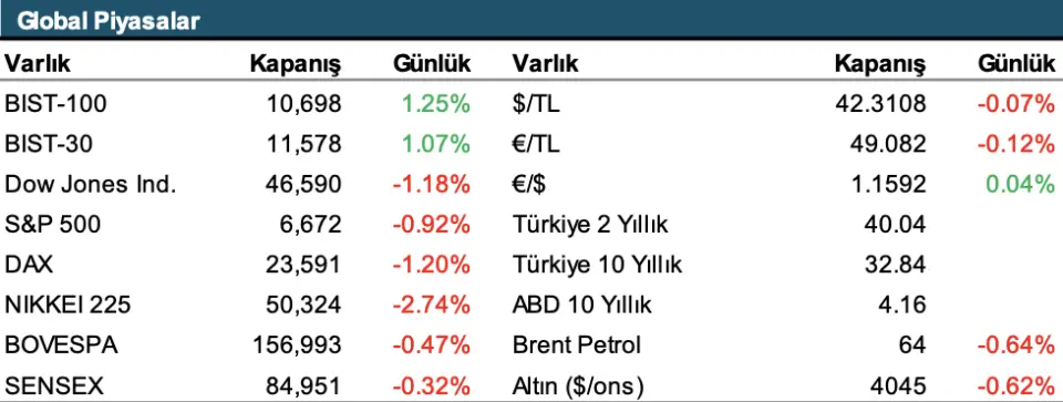 BIST100 Endeksi Dün Günü %1,25 Artışla 10.698 Seviyesinden Tamamladı! Ata Yatırım 18 Kasım Günlük Bülteninde Piyasalardaki Gelişmelere ve Beklentilerine Yer Verdi. İşte Ata Yatırım'ın Piyasaya Dair Görüşleri ve Detayları...