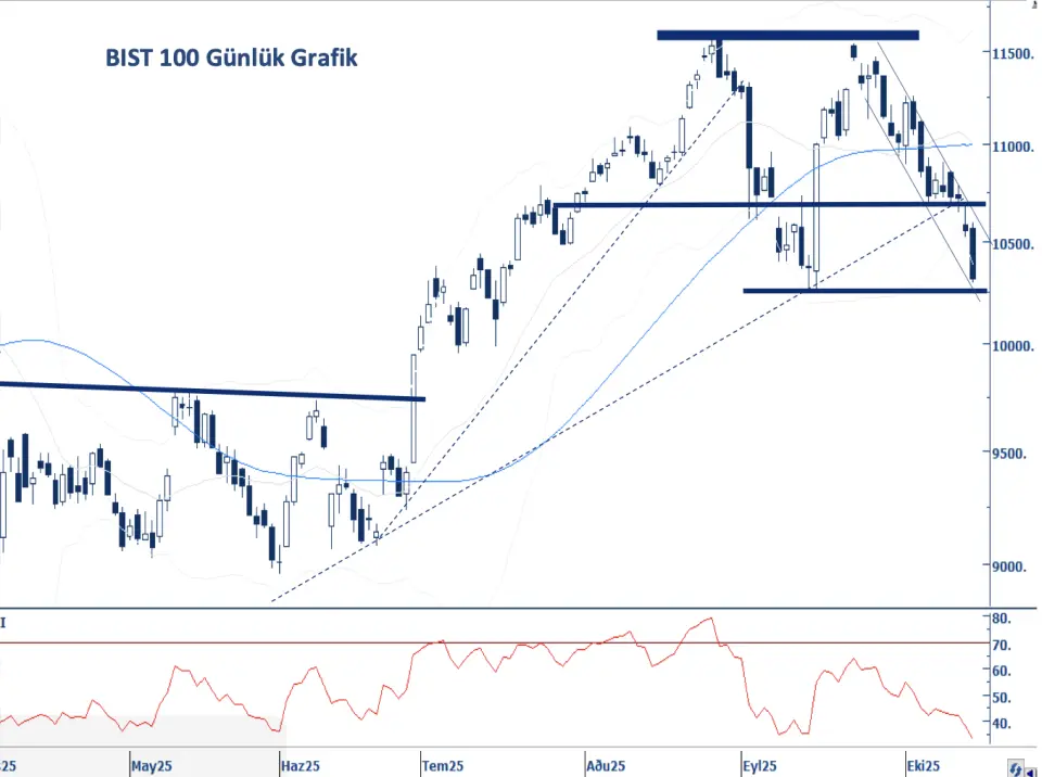 Bu durumda bir alt noktada kısa vadeli önemli destek noktası olarak izlediğimiz 10,200/10,250 bölgesine yönelik satış baskısı etkisini sürdürecektir. Bu seviye altında ise 10,000 ve 9,750 riskleri gündeme gelecektir.