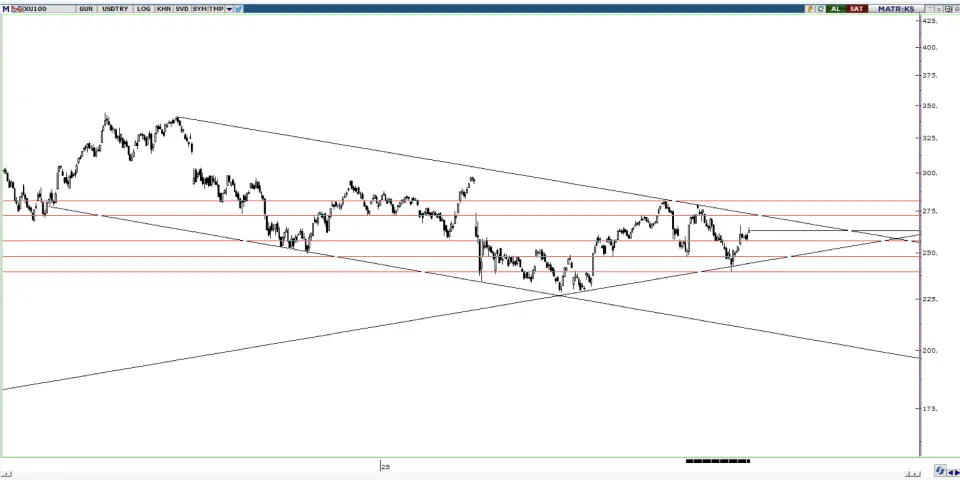 Direncin yukarı yönlü kırılması durumunda ise yatay trend direnci olan 281USD seviyesi izlenebilir. Aşağı yönlü hareketlerde ilk etapta yatay trend desteği olan 257USD seviyesi takip edilebilir. Desteğin aşağı yönlü kırılması durumunda ise yatay trend desteği olan 247USD seviyesi hedeflenebilir.
