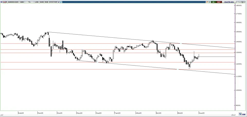 Kontrat gün içinde 12.544-12.850 bandında hareket etti. Teknik bakımdan yukarı yönlü hareketlerde ilk etapta yatay trend direnci olan 12.955 seviyesi izlenebilir. Direncin yukarı yönlü kırılması durumunda yatay trend direnci olan 13.260 seviyesi takip edilebilir. Yatay trend direncinin yukarı yönlü kırılması durumunda ise alçalan kanal direnci olan 13.660 seviyesi hedeflenebilir.