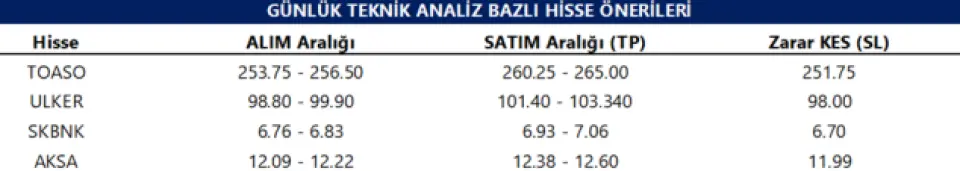 BIST100'de teknik görünüm zayıf olsa da TOASO, ULKER, SKBNK ve AKSA hisseleri teknik analizde dikkat çekiyor. Detaylar haberin devamında…