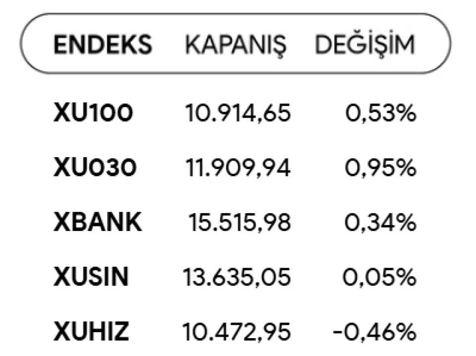 BIST100 endeksi dünkü işlemleri 0,53% yükselişle 10914 puandan tamamladı. Haftaya satıcılı başlangıcın ardından dünkü alışlar ile yeniden pozitife döndü. İşte detaylar...