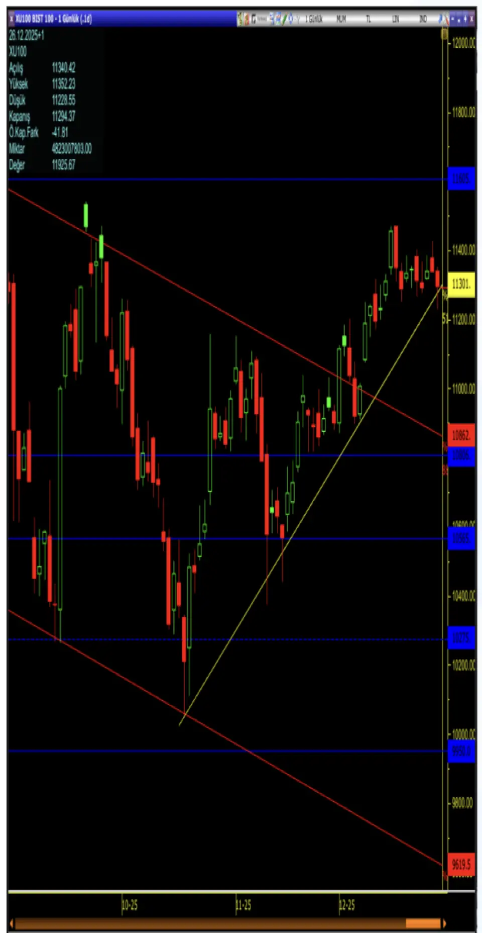 - "Geri çekilmelerin devamı halinde 11252 seviyesi kısa vadede kritik bir destek noktası olarak öne çıkıyor. 11252’nin altına sarkması durumunda, 11045 seviyesine doğru güç kayıpları görülebilir."