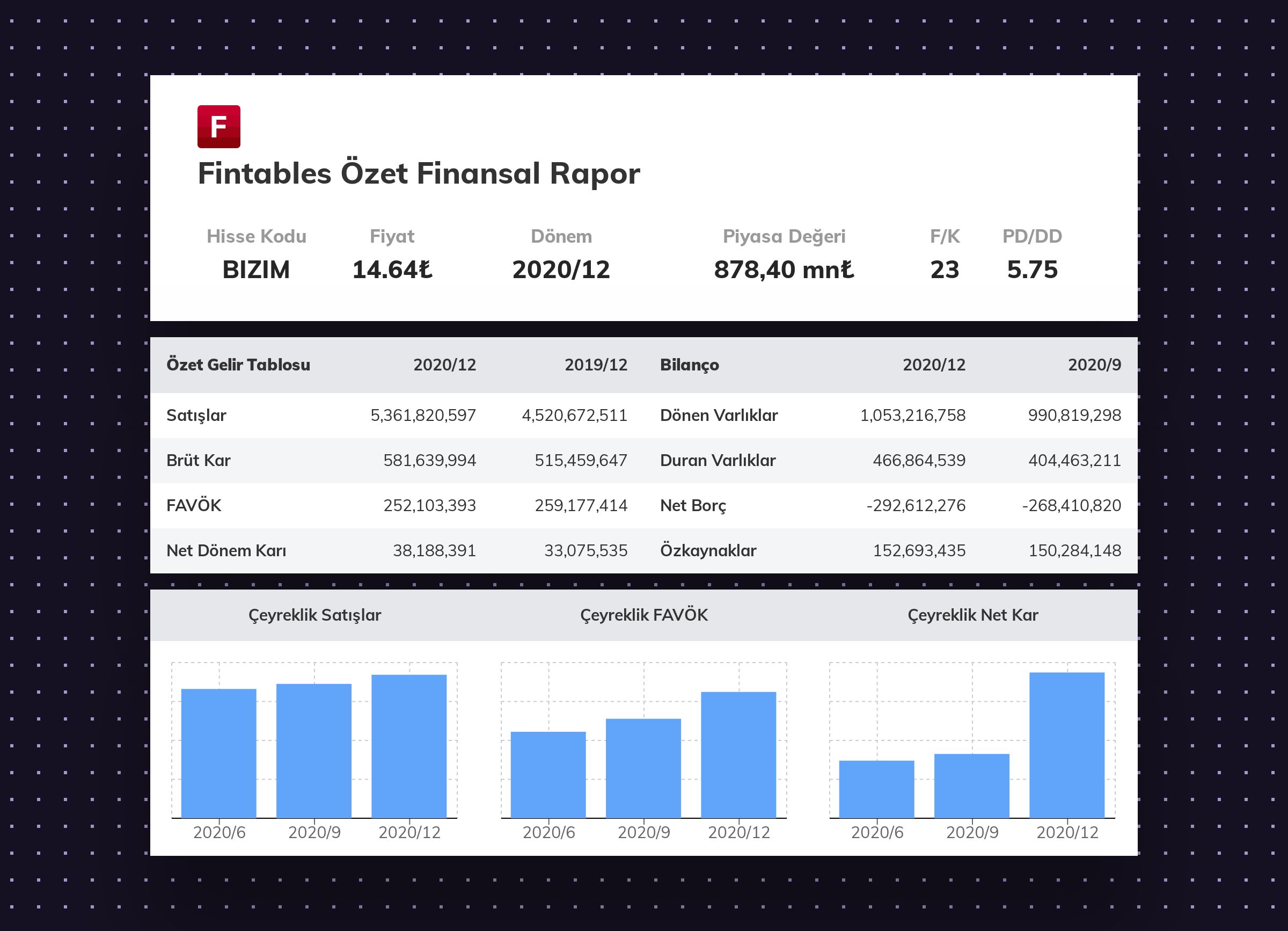 Şirket dün akşam seans kapanışı sonrası 2020 Yılına ait Finansal Raporlarını paylaştı. Şirket Bilanço ile birlikte temettü ve gelecek döneme ait hedeflerini duyurdu. Yayımlanan bilançoda aşağıdaki başlıklar öne çıktı
