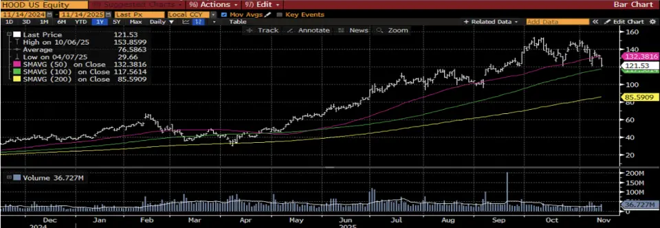 Robinhood Markets Inc. (HOOD)– HOOD, Amerika’da faaliyet gösteren bir finansal teknoloji şirketidir. Kullanıcılarına hisse senetleri, borsa yatırım fonları (ETF’ler), opsiyonlar ve kripto para işlemleri gibi yatırım araçlarını komisyonsuz veya düşük ücretlerle sunan bir aracı kurum platformu işletmektedir. Hisse için Bloomberg’de yer alan analist beklentileri 12 aylık vadede ortalama 154,08 USD hedef fiyata ve son kapanış fiyatına göre %26,8 getiri potansiyeline işaret ediyor.