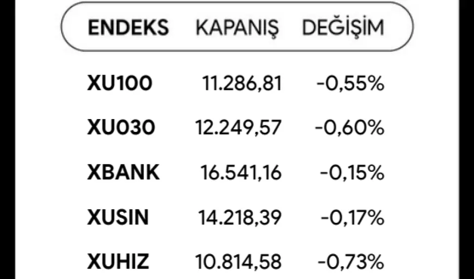 BIST 100 endeksi, dün yaşanan %0,55'lik düşüşle 11.286 puana gerileyerek kritik 11.300 desteğinin hemen altında kapandı. ASELS ağırlıklı teknoloji endeksinin (XUTEK) %3 değer kaybettiği günde, toplam işlem hacmi 113,7 milyar TL ile zayıf kaldı. İşte detaylar...