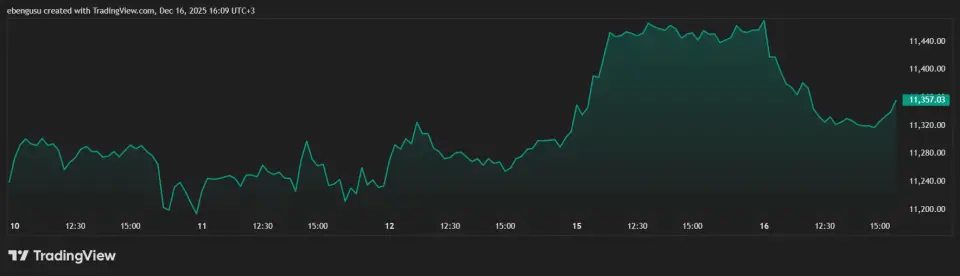BIST100 endeksi yeni haftaya başlarken de pozitif seyrini korudu. Günü %1,28 yükselişle 11456 puandan tamamladı. Toplam işlem hacmi 127,4 milyar TL oldu. XTCRT endeksi %2,2 yükselişle öne çıktı. Bakan Şimşek dün meclisteki konuşmasında yeniden değerleme oranının %16-19 arasında olacağını belirtti. Ukrayna rusya barışına yönelik Berlin’deki barış görüşmelerinde önemli yol kat edildiği belirtildi. Endeks tarihi zirveye yakın noktadayken, gelen pozitif haber akışları iyimser fiyatlamayı devam ettirebilir.