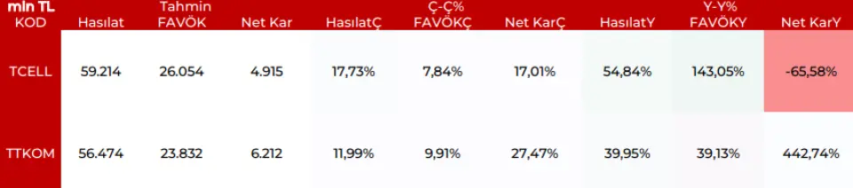 TCELL: Operasyonel güçlü sonuçların çeyreksel anlamda takibini beklerken ARPU büyümesinin de devamını beklemekteyiz. 3Q25 özelinde FAVOK marjının 2Q'ye paralel gerçekleşmesini beklemekteyiz. Yıl sonu için beklentilerde yukarı yönlü risklerin olduğunu düşünürken güçlü duruşun sürmesini beklemekteyiz