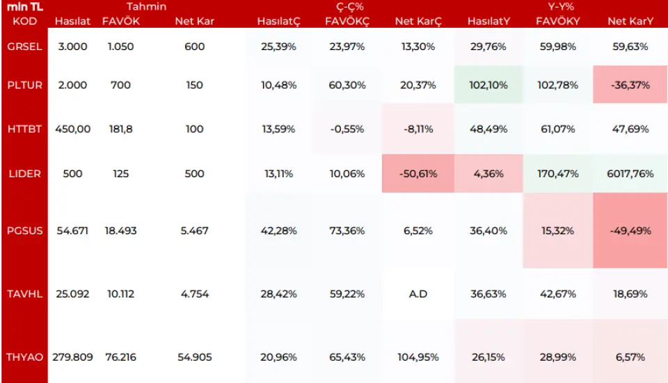 GRSEL: Güçlü fiyatlama davranışlarıyla birlikte reel büyümenin etkin olduğu ve güçlü marjların süregeldiği yapıyı takip etmeyi sürdürüyoruz. Beklentilerimiz iyimser olmaya devam edecek.