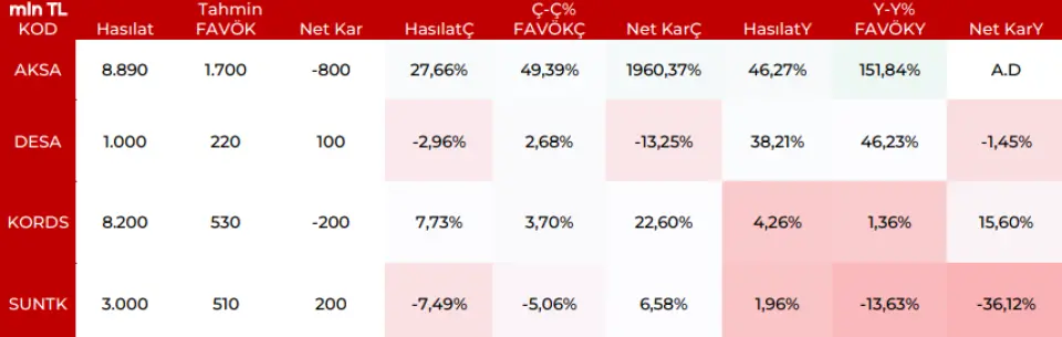 SUNTK: Şirketin ana odak beklentisi stabil bir hasılat, maliyet optimizasyonu ile dengelenen FAVÖK izlemek idi. Bu seyir de yapının devamını izlemeyi sürdürüyoruz. Yüksek baz etkisi yıllık bazda sınırlı negatif etki yaratabilir.