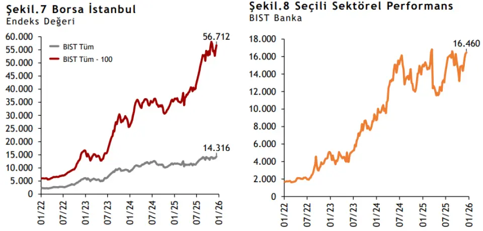 5-12 Aralık haftasında, küresel piyasalarda risk iştahının artması, dışarıda Fed kararı içeride ise TCMB kararları ardından haftalık bazda borsada yukarı yönlü ivme gözlendi. Bist100 endeksi haftalık %3’e yakın artışla haftayı 11.311 puandan haftayı kapatırken Bist Bankacılık endeksinde haftalık artış %0,8 ile nispeten daha sınırlı kalsa da son haftalardaki ivmeye bakıldığında yukarı yönlü ivmenin üst üste gerçekleştiği görülüyor. Katılım 50 endeksi ise haftalık %3,3 artarak haftayı 12.440’dan kapattı.