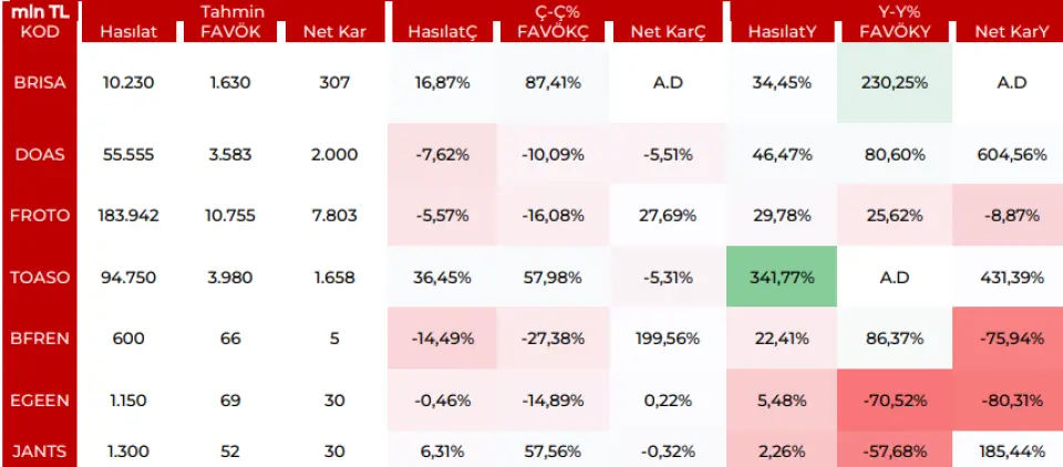 TOASO: Stellantis etkisinin sürmesini beklerken yüksek baz ile beraber karlılıkta artış beklemekteyiz. 3Q25 için 10.75mlr TL FAVOK 7.8mlr TL Net Kar beklemekteyiz.