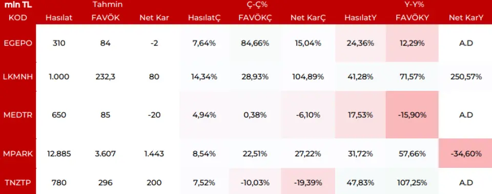 EGEPO: Hastanelerin yeni modernize halinin yanı sıra görece maliyet optimizasyonlarıyla toparlanmaya çalışan yapıyı takip etmeyi sürdürüyoruz. Esas odak şirketin %25 yıllık FAVÖK marjı yaratımı ki bunu kademli beklemek mümkün olacaktır