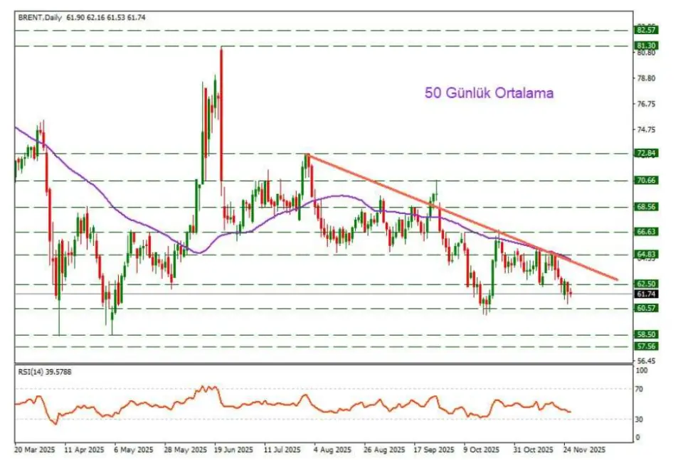 Analizde, aşağı yönlü hareketlerin sürmesi halinde 60.57 ve 58.50 bölgelerinden gelebilecek olası tepkilerin önem taşıdığı belirtilirken, yukarı yönlü fiyatlamaların görülmesi durumunda 62.50 seviyesinin aşılmasıyla düşüş trend çizgisinin direnç olarak test edilebileceği ifade ediliyor.