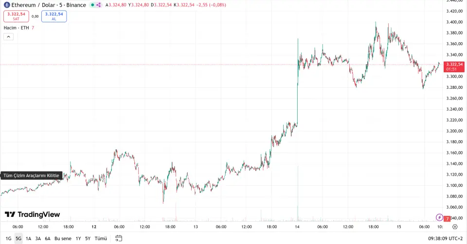 Ethereum, güncel işlemlerde 3.307 dolar seviyesinde fiyatlanıyor. 3.300 bandı etrafındaki hareket, kısa vadeli yön açısından kritik önemini koruyor. Bu seviyenin üzerinde kalıcılığın sürmesi, yükseliş eğiliminin devam edebileceğine işaret ediyor. Yukarı yönlü denemelerde 3.360 ve 3.400 seviyeleri önemli direnç noktaları olarak izleniyor. 3.400 doların aşılması durumunda fiyatın 3.450 – 3.500 bandına doğru ivme kazanması beklenebilir. Özellikle 3.500 dolar üzerindeki kapanışlar, teknik görünümü daha güçlü bir pozisyona taşıyabilir. Aşağı yönlü hareketlerde 3.300 dolar seviyesi ilk destek konumunda bulunuyor. Bu seviyenin altına inilmesi halinde 3.250 ve 3.200 destekleri gündeme gelebilir. 3.200 dolar altında kalıcılık sağlanması, kısa vadeli baskının arttığına işaret edebilir. Genel yapı, Ethereum’un 3.300 dolar üzerinde kaldığı sürece pozitif görünümünü koruduğunu gösteriyor.