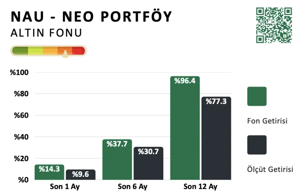 Altın fonları arasında aktif yönetimi ile AltınS1/Altın BYF, külçe altın geçişini iyi yöneten ve bu sayede Altın üzeri getiriyi yaratabilen Neo Portföy Altın Fonu - NAU öne çıkıyor. NAU 1 yıllık dönemde stopaj dahil altın üzeri getiriyi yatırımcılarına sağlamış görünüyor.