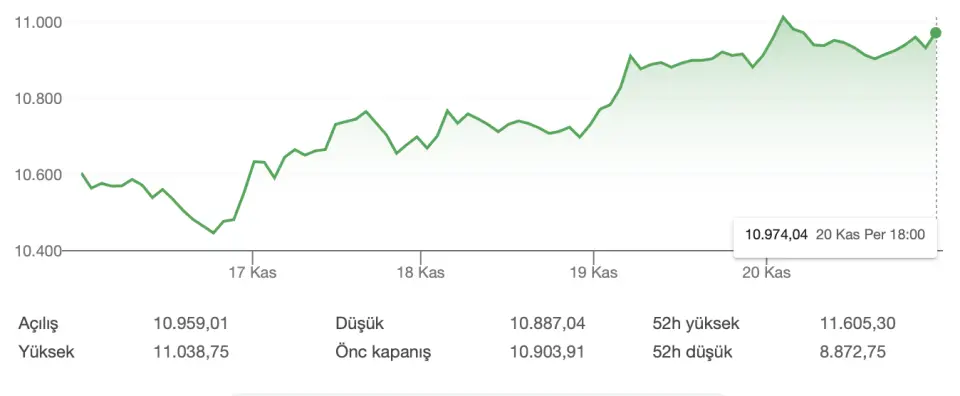 Son 5 Güne Ait BİST 100 Endeksi Grafiği: