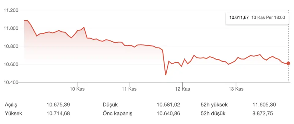 Güne Borsa İstanbul'da BIST 100 endeksi, yüzde 0,22 azalışla 10.604,89 puandan başlangıç yaptı. Önceki gün satış ağırlıklı bir seyrin hakim olduğu Borsa İstanbul'da BIST 100 endeksi, günü yüzde 0,11 değer kaybı ile 10.628,63 puandan noktaladı. Önceki kapanışa oranla açılışta BIST 100 endeksi, 23,74 puan ve yüzde 0,22 düşüş ile 10.604,89 puana düştü. Holding endeksinin yüzde 0,91 düştüğü günde bankacılık endeksi ise yüzde 0,37 değer kaybetti. Sektör endeksleri arasında en fazla değer kaydeden holding endeki olurken, en çok yükselen ise 0,94 ile orman kağıt basım olarak karşımıza çıktı.