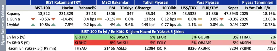 Dünya piyasalarının seyri Borsa İstanbul’da pozitif bir açılışa işaret ediyor. Altın madeni, demir-çelik, havacılık, savunma hisselerinin küresel harekete paralel yükselişte öncü olması bekleniyor. Son dönemde geride kalan banka hisseleri yükselişe katılabilir. Elektrikli arabalara yönelik strateji değişikliği sonrası Stellantis hisselerindeki %25 kaybın psikolojik etkisi ile Tofaş endeksten negatif ayrışabilir. Hisse için pozitif görüşümüzde farklılık yok. Beklenti altı faaliyet karı açıklayan Tüpraş için AL tavsiyemizi TUT olarak güncelledik. Hissede özel tepki beklemiyoruz. Endeks için destek ve direnç seviyeleri 13,400 ve 13,650.