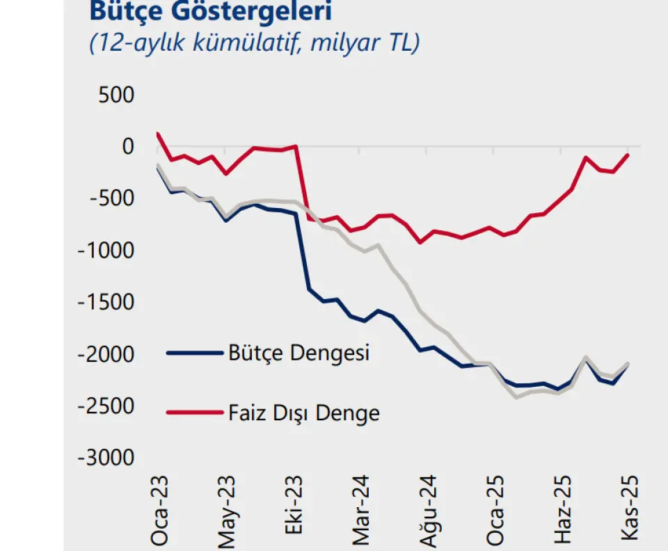 Tacirler Yatırım’ın analizine göre merkezi yönetim bütçesi kasım ayında güçlü gelir artışının etkisiyle 169,5 milyar TL fazla verdi. Vergi gelirlerindeki reel artış bütçe dengesini desteklerken, 12 aylık bütçe açığı 2,1 trilyon TL’ye geriledi. İşte detaylar...