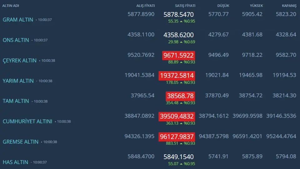 Çeyrek Altın 10.000 TL Sınırına Dayandı Kapalıçarşı 17 Ekim Fiyatları