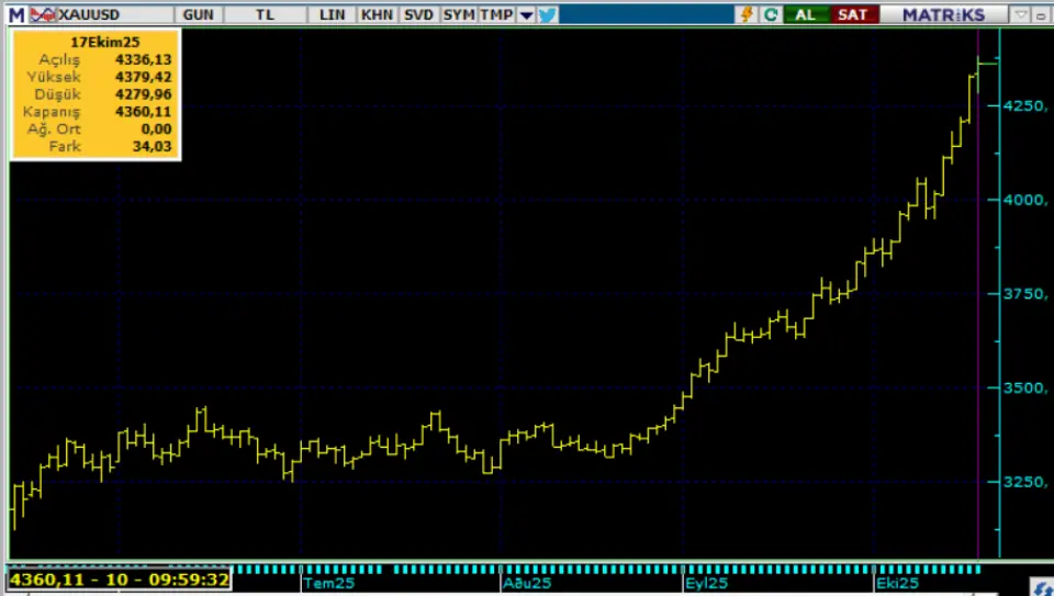 Ekonomik ve siyasi zemin aynı kalırsa teknik aşırılıklarla tetiklenen düzeltmeler alım fırsatı olabilir. Altın fiyatlarında teknik olarak 4.000 Usd yakın destek noktası olarak takip edilebilir. Bu sabah 4.375 Usd seviyesindeki ons altında 4.400 ve 4.500 Usd seviyeleri gün içi direnç, 4.300 ve 4.200 Usd seviyeleri gün içi destek seviyeleri olarak izlenebilir. Bugün sınırlı pozitif seyir izleyebilir.
